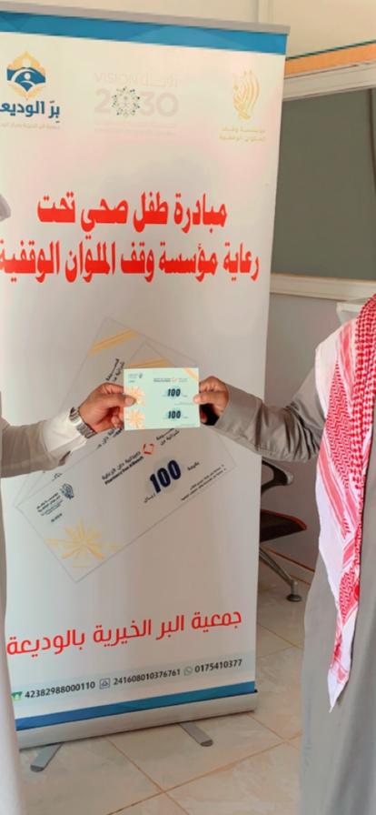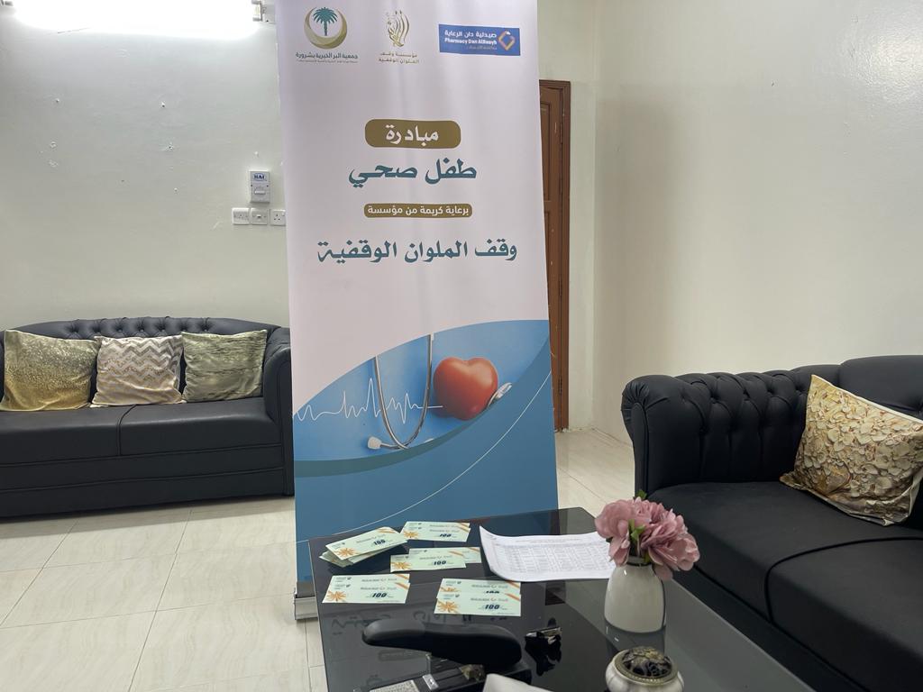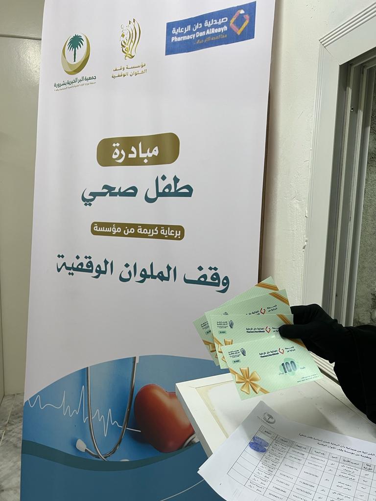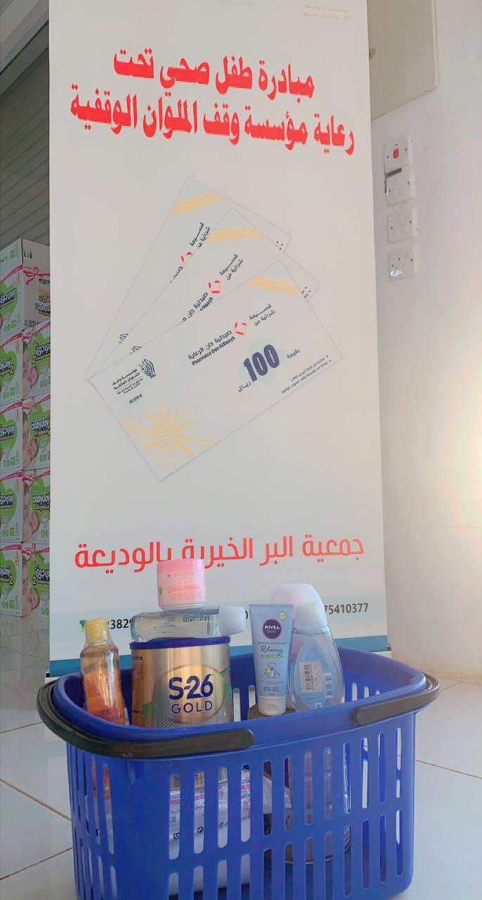 من منطلق حرصنا على كل ما من شأنه بناء الفرد والمجتمع، ولكي يتمتع اطفالنا بتغذية سليمة وصحة جيدة، ولرفع المستوى التوعوي لدى الأسرة، أطلقنا مبادرة طفل صحي، والتي تهدف إلى توفير التأمين الصحي للطفل، عن طريق تقديم بطاقة شراء مجانية للأسرة، لتوفير مستلزمات الطفل من الصيدلية، تحتوي البطاقة على رمز شريطي (باركود) تثقيفي عن صحة الطفل.